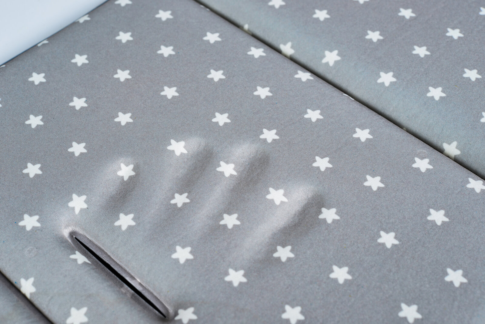 Горната част на подложката е изработена от висококачествен и приятен на допир плат