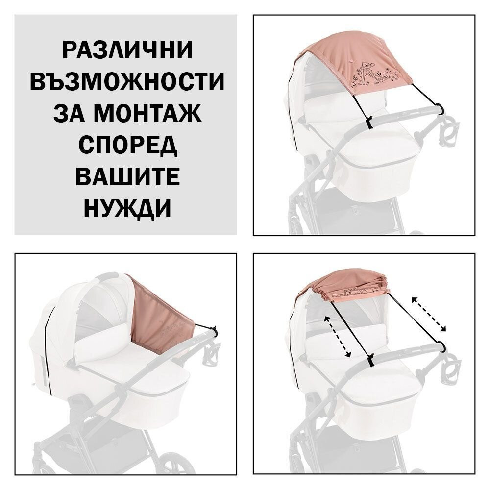 Удължава сенника на Вашия лежащ, седящ кош или кошница за кола, за да осигури на Вашето бебе оптимална защита;