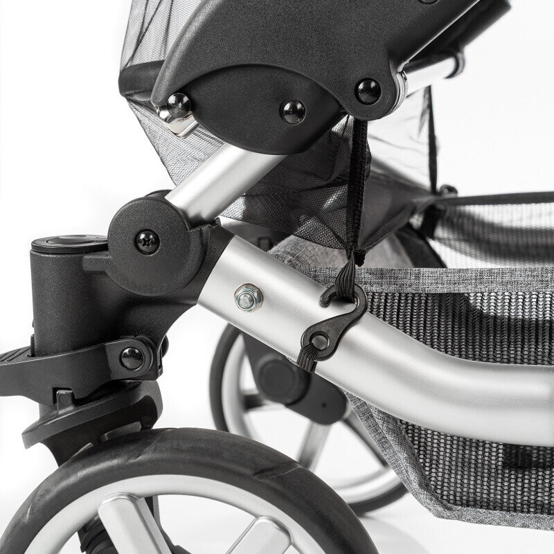 Дишащ материал - гарантира постоянна вентилация на въздуха в детската количка и предпазва от натрупване на топъл въздух, за приятно хладна среда вътре в детската количка;