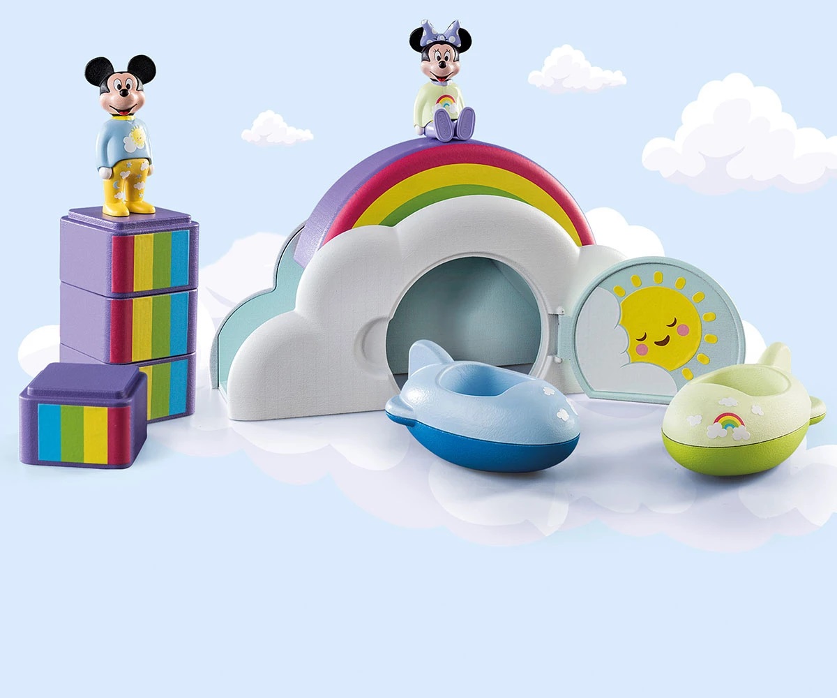 Първа ролева игра с Мики и Мини: легнете в облачния дом, състезавайте се с мечтаните самолети или се изкачете по стълбите с дъждовни капки;