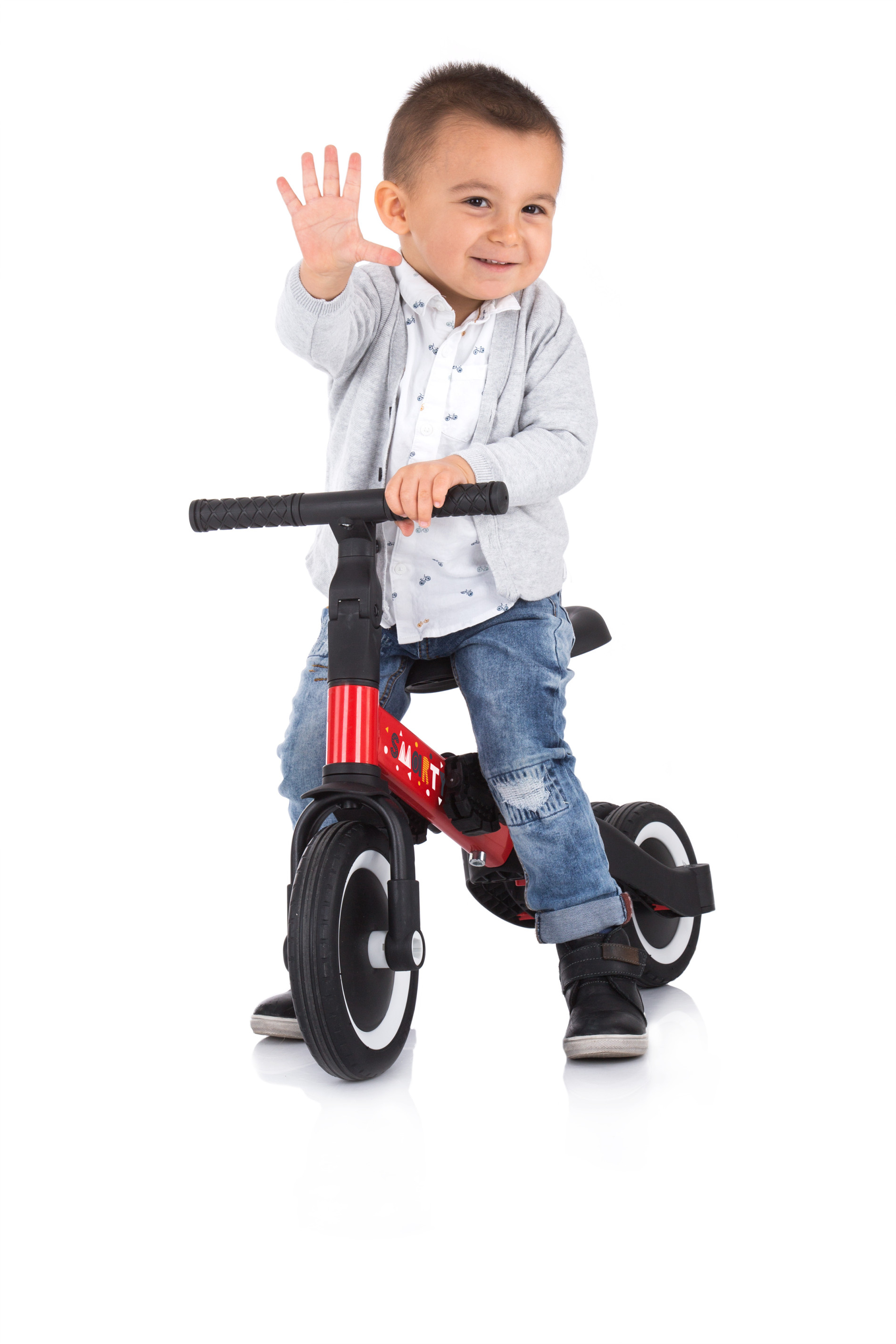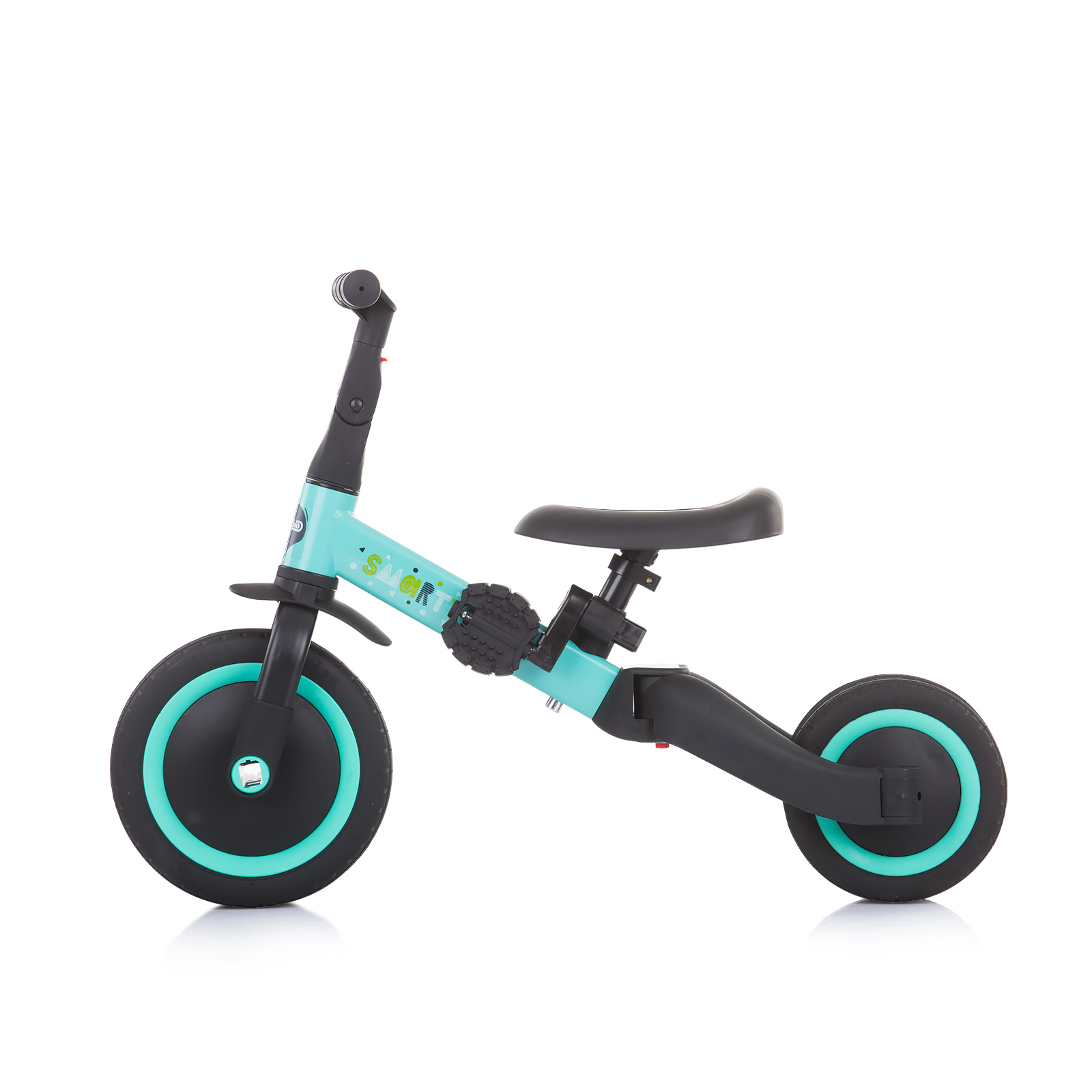 Превърща се от колело за баланс в триколка бързо благодарение на щрак система от механизми;