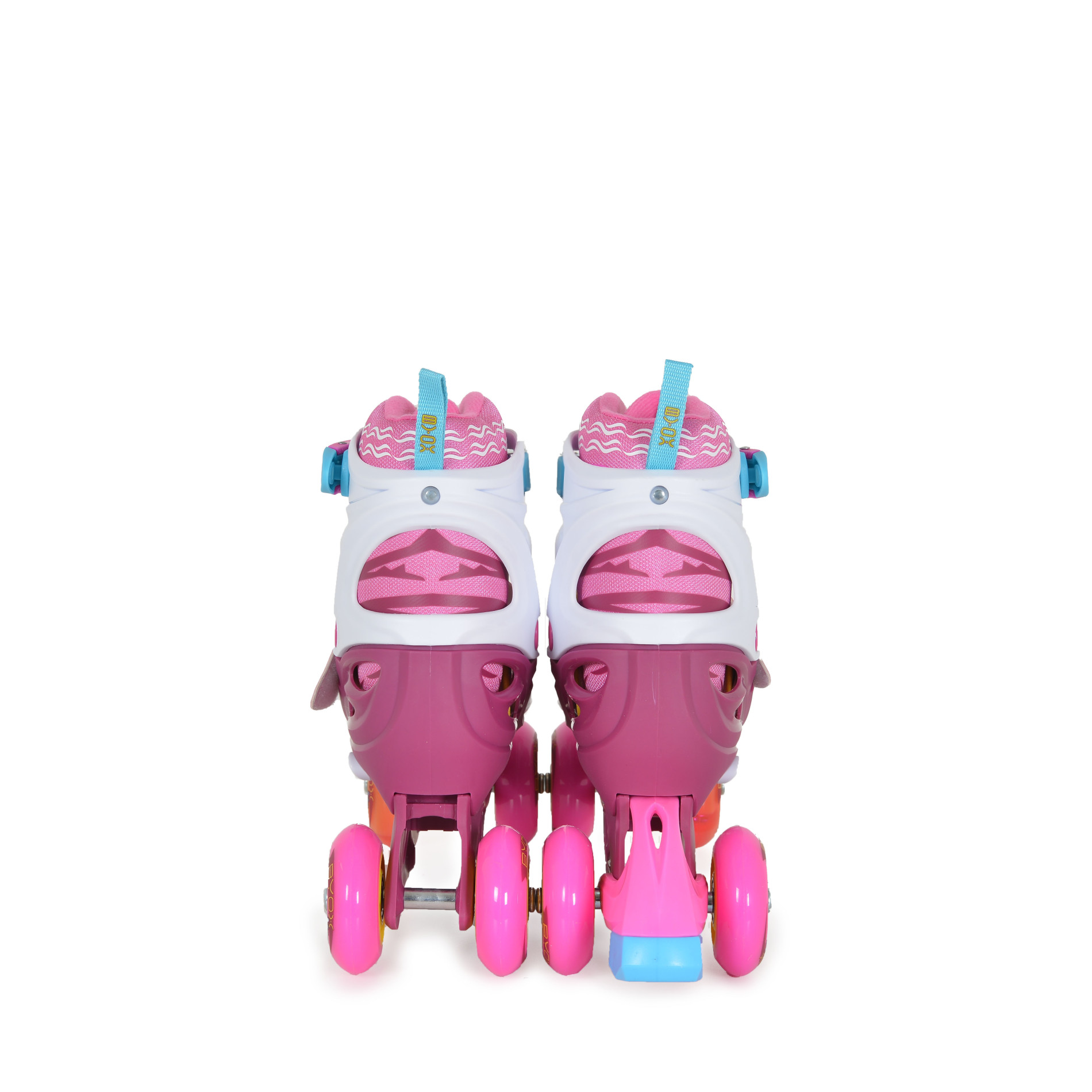 Колелата имат възможност за поставяне в три положения: - 4те колела в една редица като ролери; - 2 колела отпред и 2 отзад като кънки; - 2 колела отзад и 2 в редица отпред;