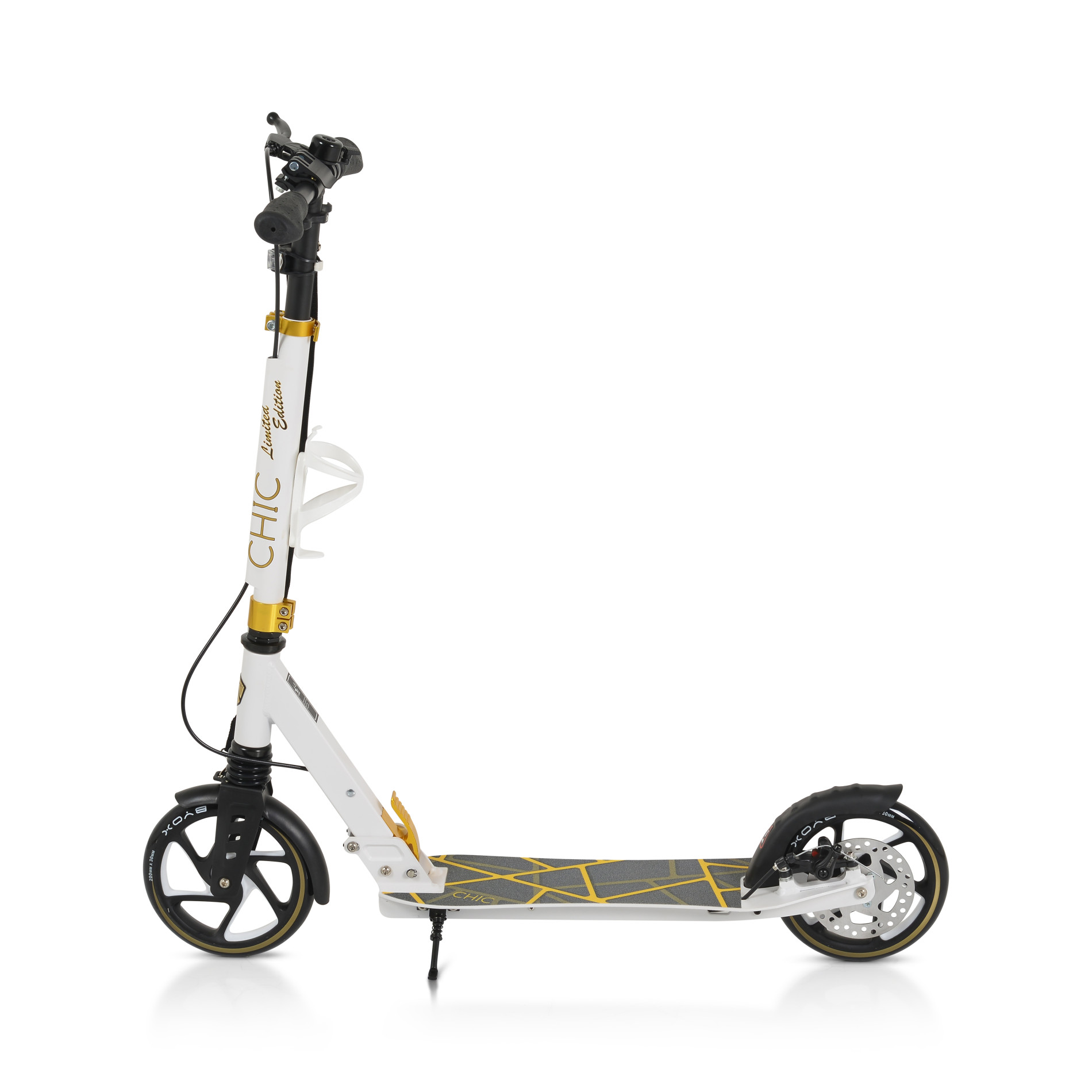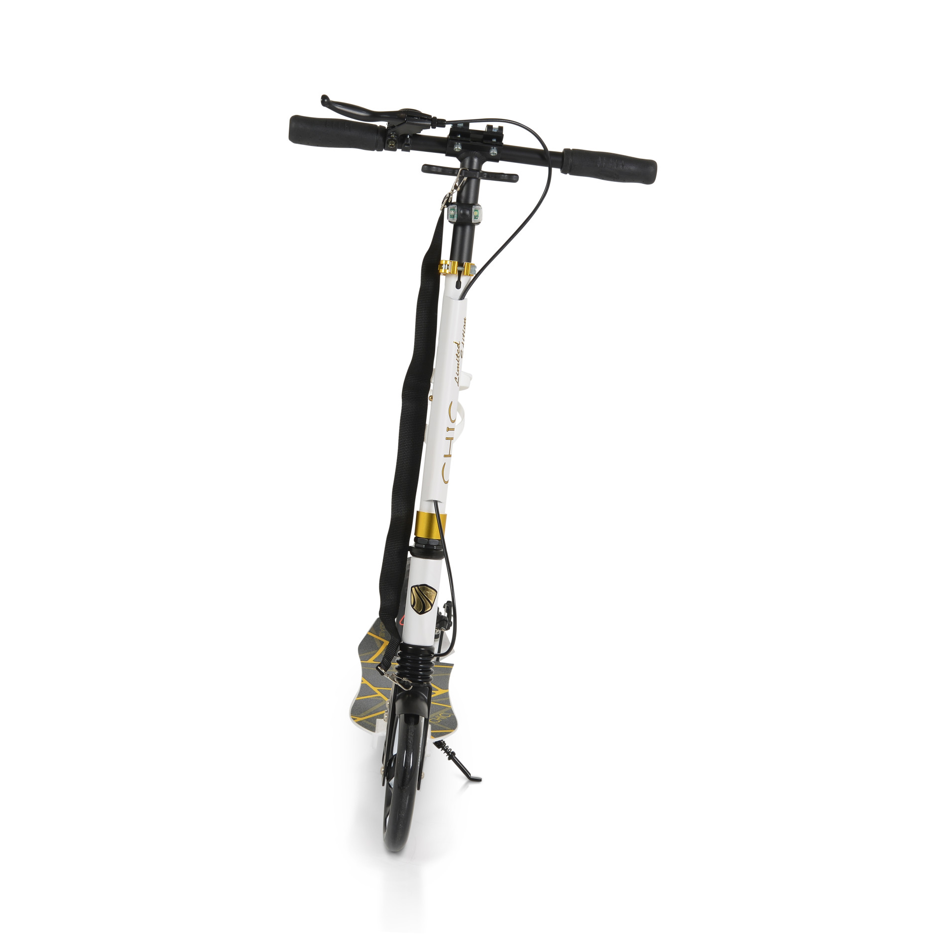 • Алуминиева сгъваема тротинетка CHIC със задна дискова спирачка;