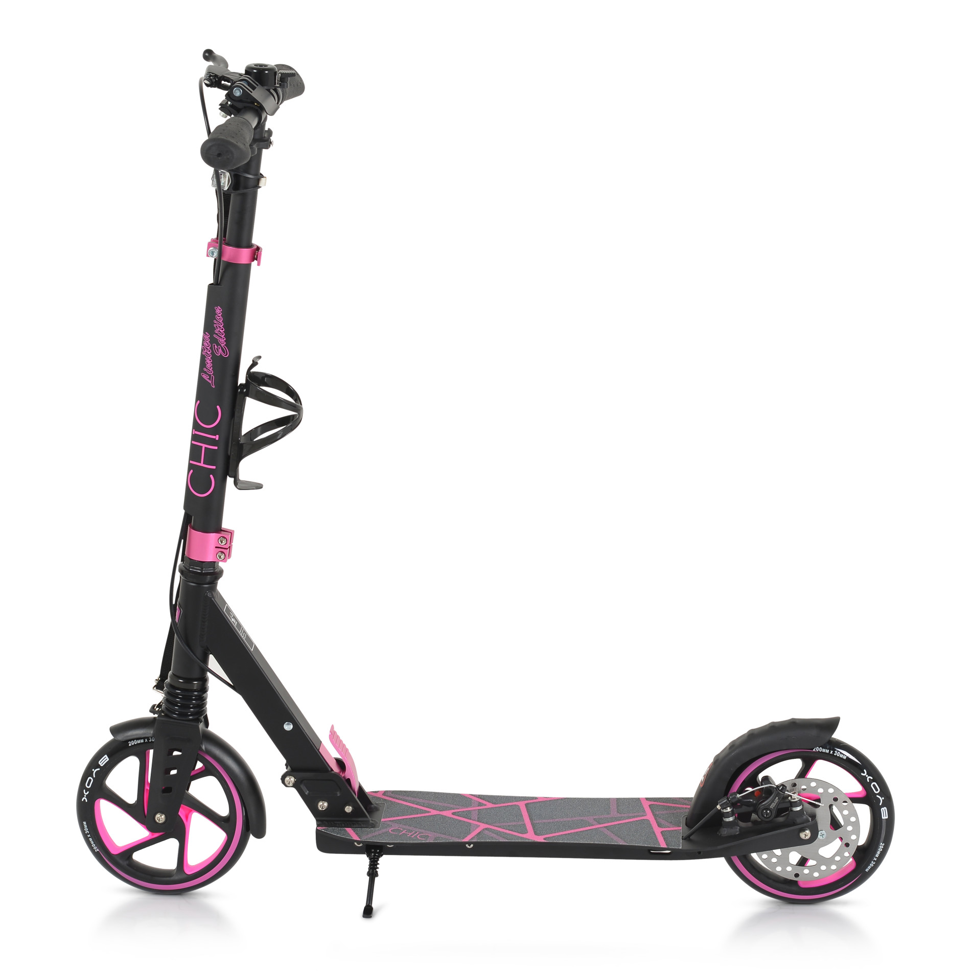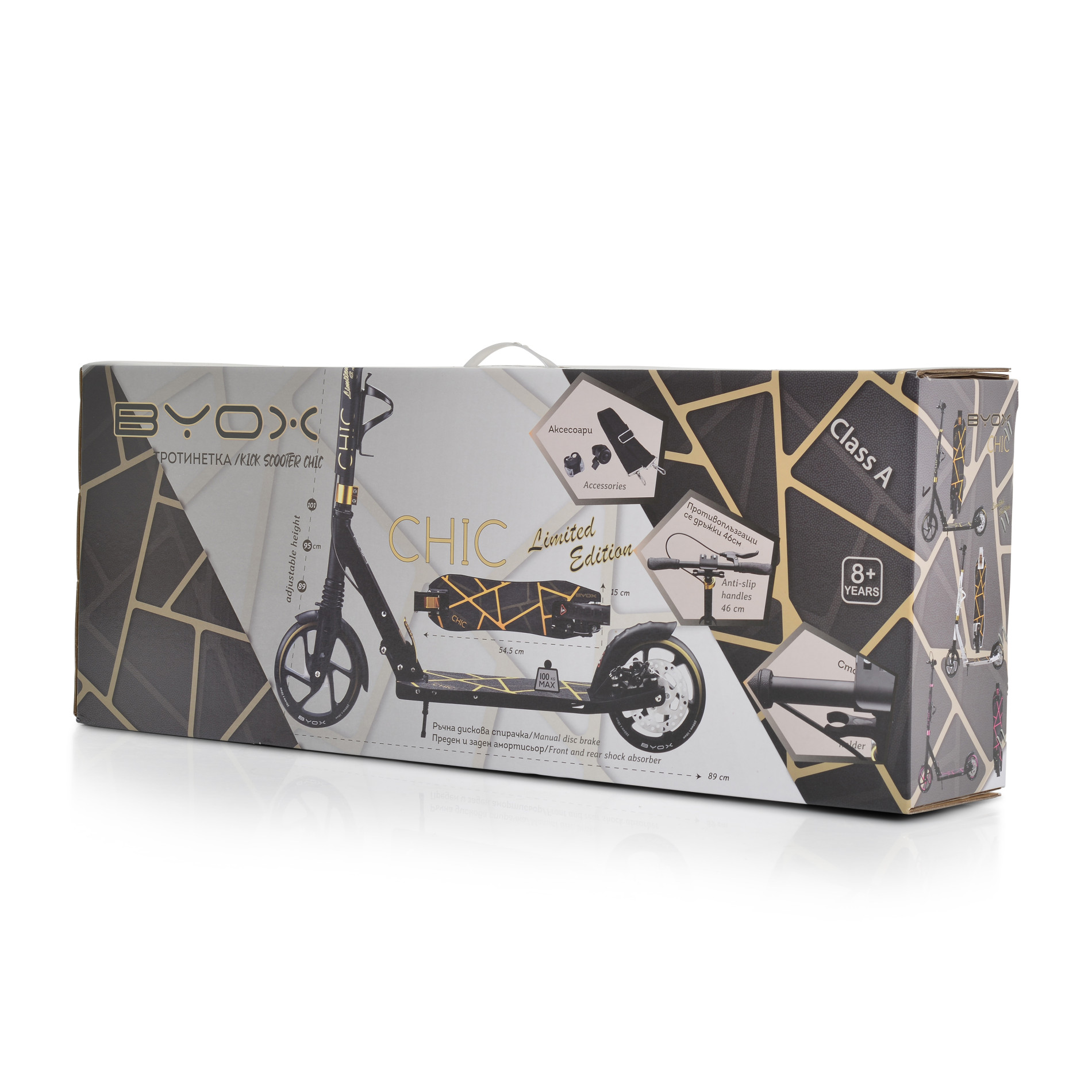 • Алуминиева сгъваема тротинетка CHIC със задна дискова спирачка;