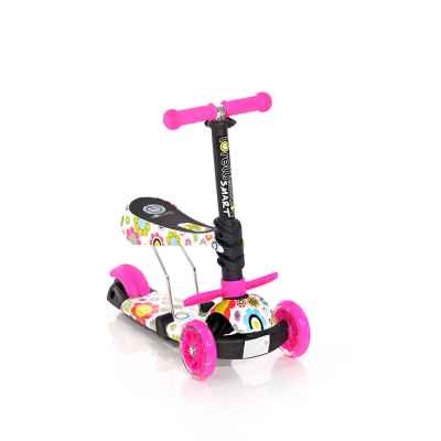 Седалката може лесно да се повдигне и сгъне успоредно на кормилото, което позволява бързото трансформиране от баланс колело в тротинетка и обратното;