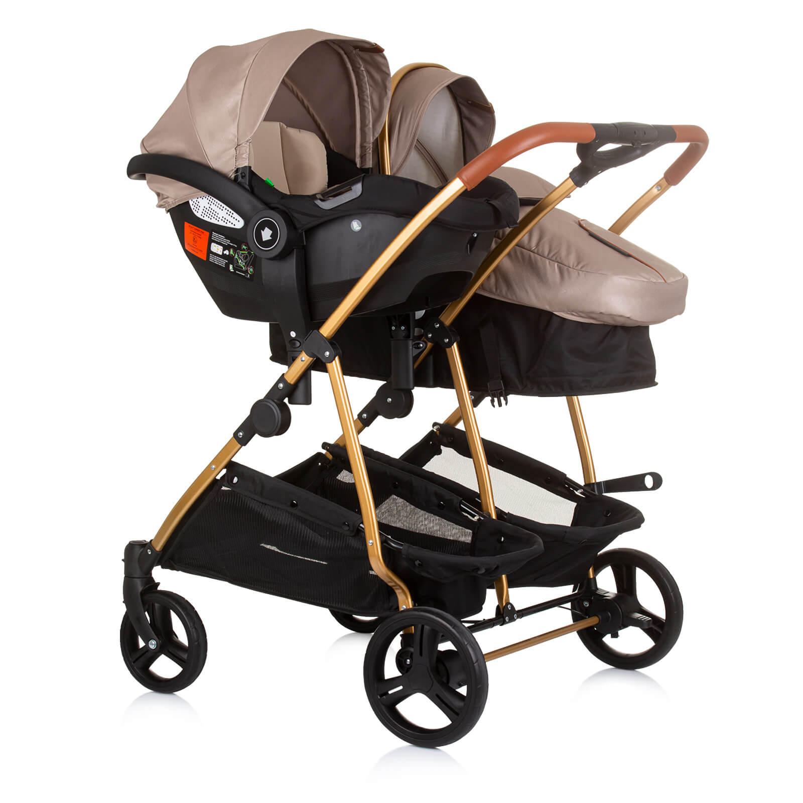 Две седалки, всяка от които се трансформира в кош за новородено;