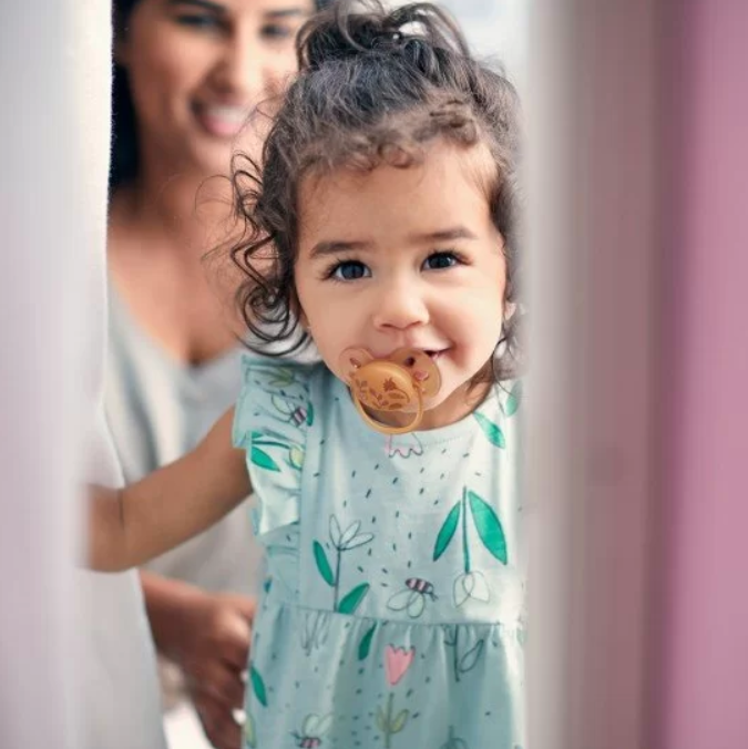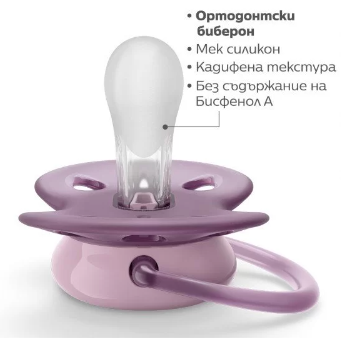 • Дръжка с предпазен пръстен, за лесно изваждане на залъгалката, удобна за хващане дори от малките ръчички;