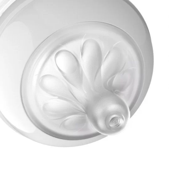 Има уникален отвор, който пуска мляко само, когато бебето засмуква активно. Когато бебето спре да пие, млякото спира да тече, което позволява на мъничето да преглътне и да си поеме удобно въздух;