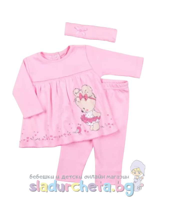 Бебешки и детски магазин "СЛАДУРЧЕТА" и марката "Sunny Kids" представят на Вашето внимание бебешки комплект от три части със следните характеристики: