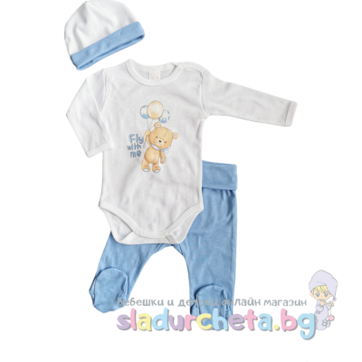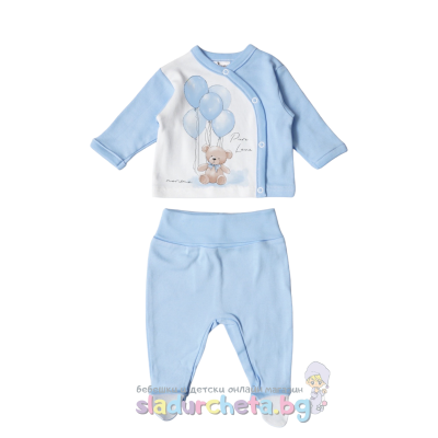 Бебешки и детски магазин "СЛАДУРЧЕТА" и марката "Candy baby" представят на Вашето внимание бебешки комплект от две части със следните характеристики: