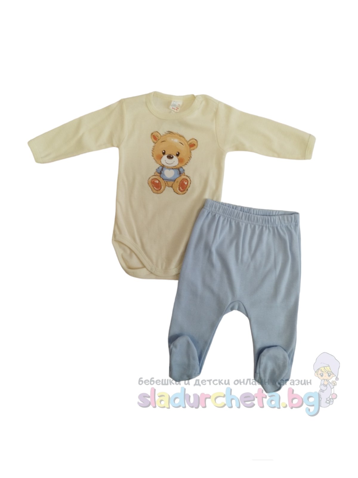 Бебешки и детски магазин "СЛАДУРЧЕТА" и марката "Светли" представят на Вашето внимание бебешки комплект от две части със следните характеристики: