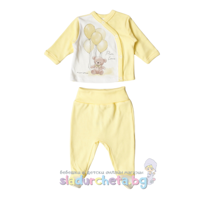Бебешки и детски магазин "СЛАДУРЧЕТА" и марката "Topolino" представят на Вашето внимание бебешки комплект от три части със следните характеристики: