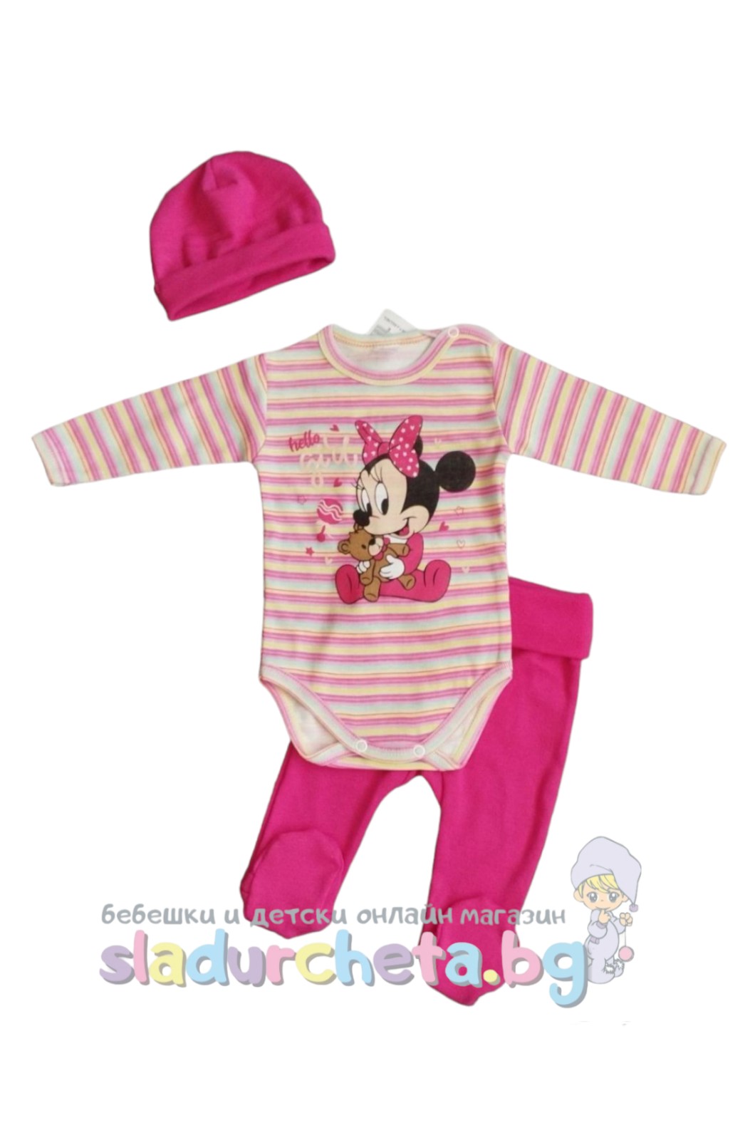 Бодито е с дълъг ръкав на цветни райета и апликация на Мини Маус;