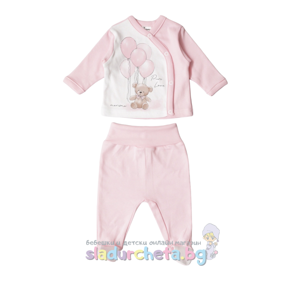 Бебешки и детски магазин "СЛАДУРЧЕТА" и марката "Морисмо" представят на Вашето внимание бебеешки комплект от две части със следните характеристики:
