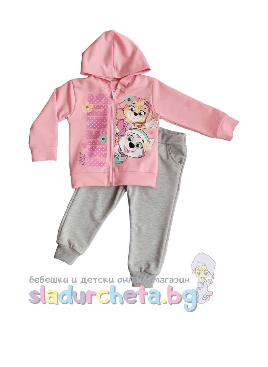 Суитшъртът е с качулка, с дълъг ръкав в розов цвят с апликация на кученцата от Пес Патрул;