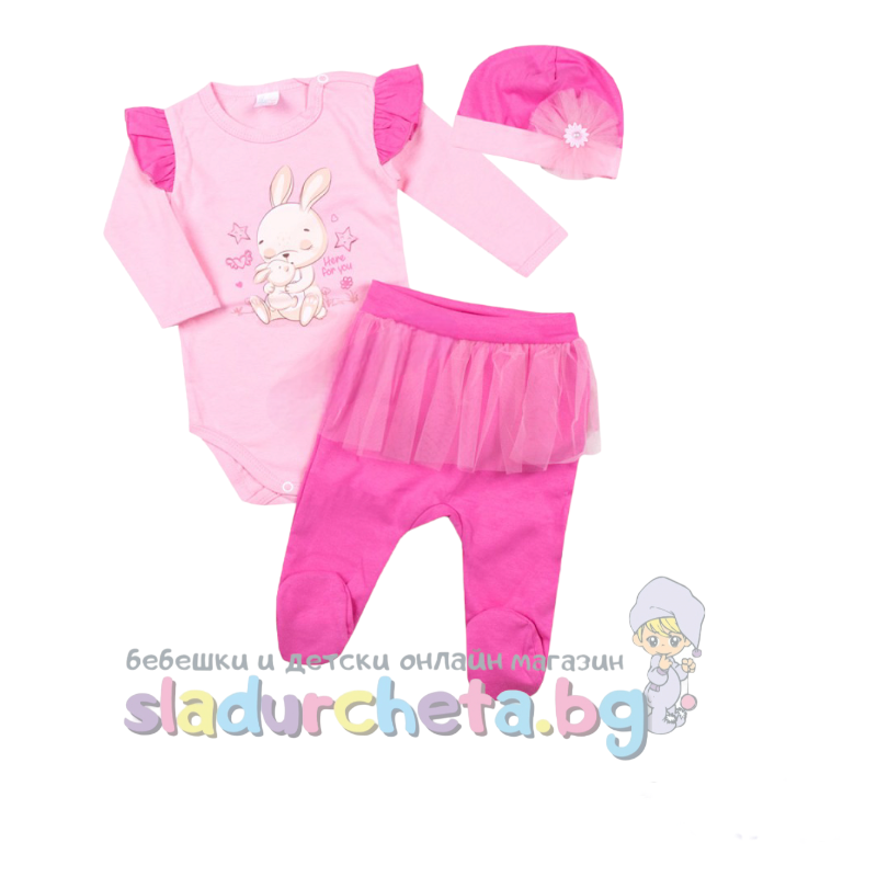 Бебешки и детски магазин "СЛАДУРЧЕТА" и марката "Светли" представят на Вашето внимание бебешки комплект от три части със следните характеристики: