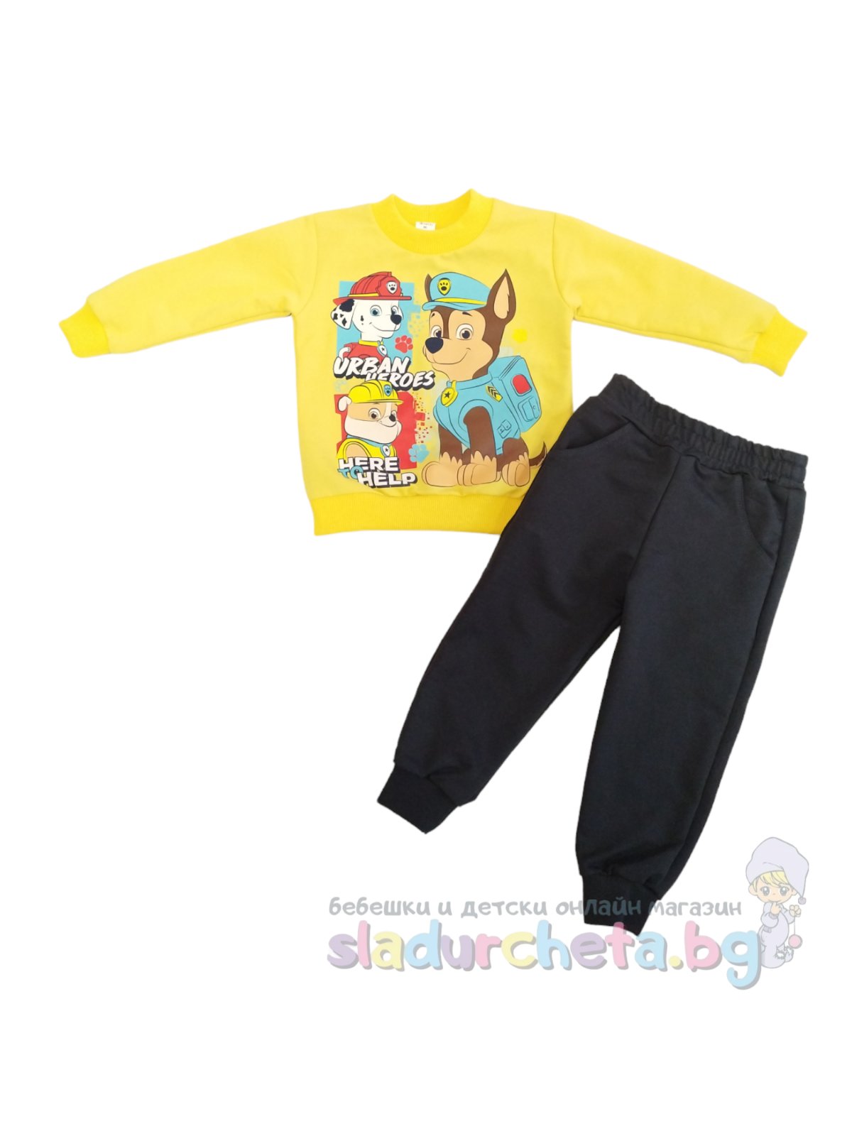 Блузата е с дълъг ръкав в жълт цвят с апликация на Пес Патрул;