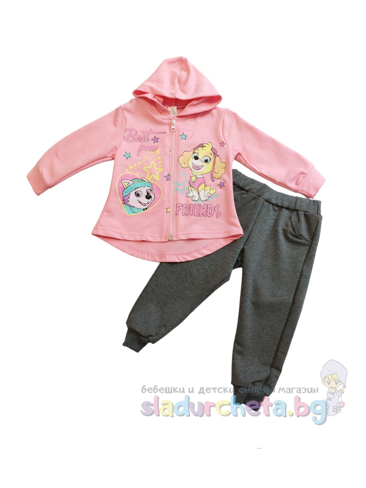 Суитшъртът е с качулка, с дълъг ръкав в розов цвят с апликации на кученцата от Пес патрул;
