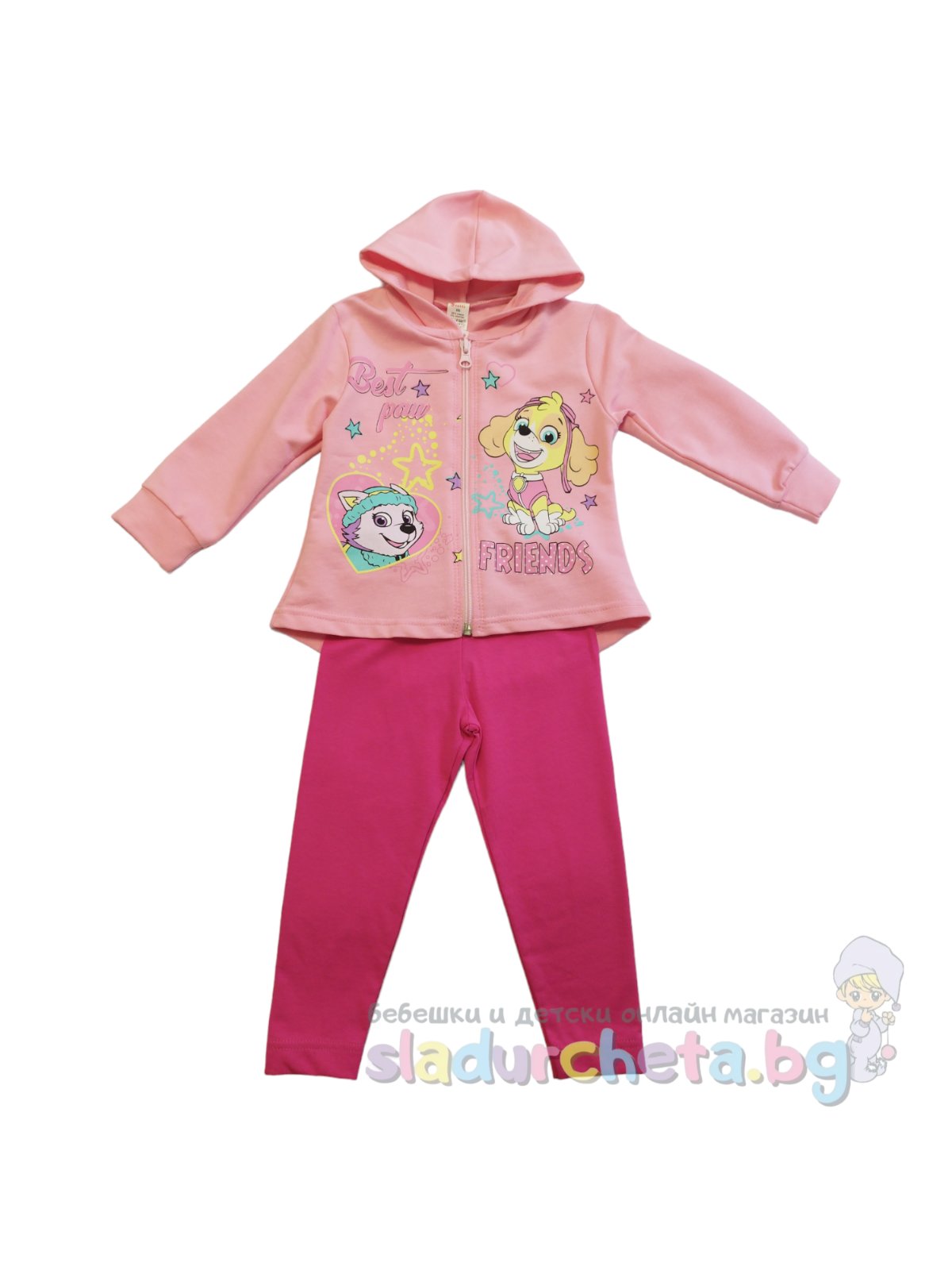 Суитшъртът е с качулка, с дълъг ръкав в розов цвят с апликация на кученцата от Пес патрул;