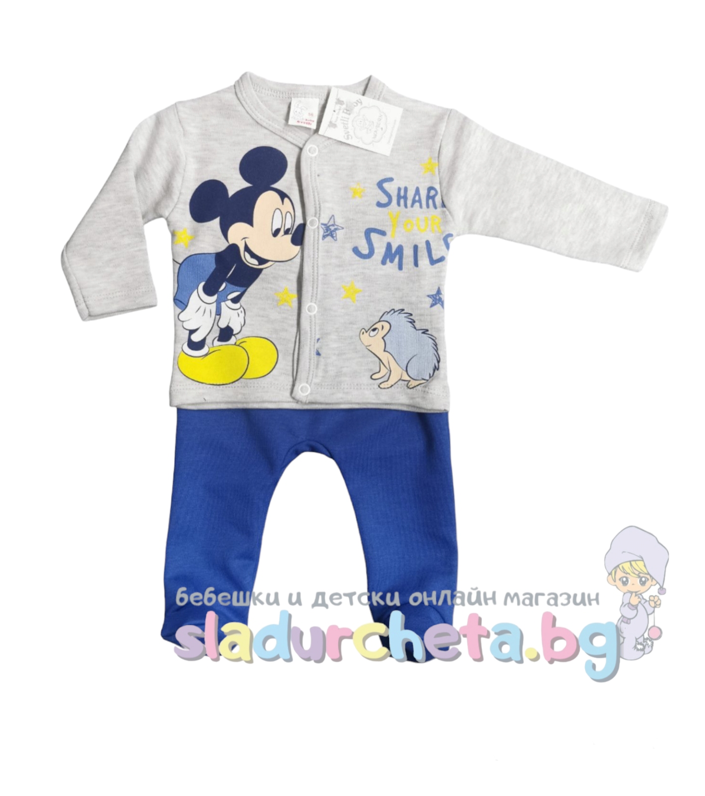 Бебешки и детски магазин "СЛАДУРЧЕТА" и марката "Светли" представят на Вашето внимание бебешки комплект от две части със следните характеристики: