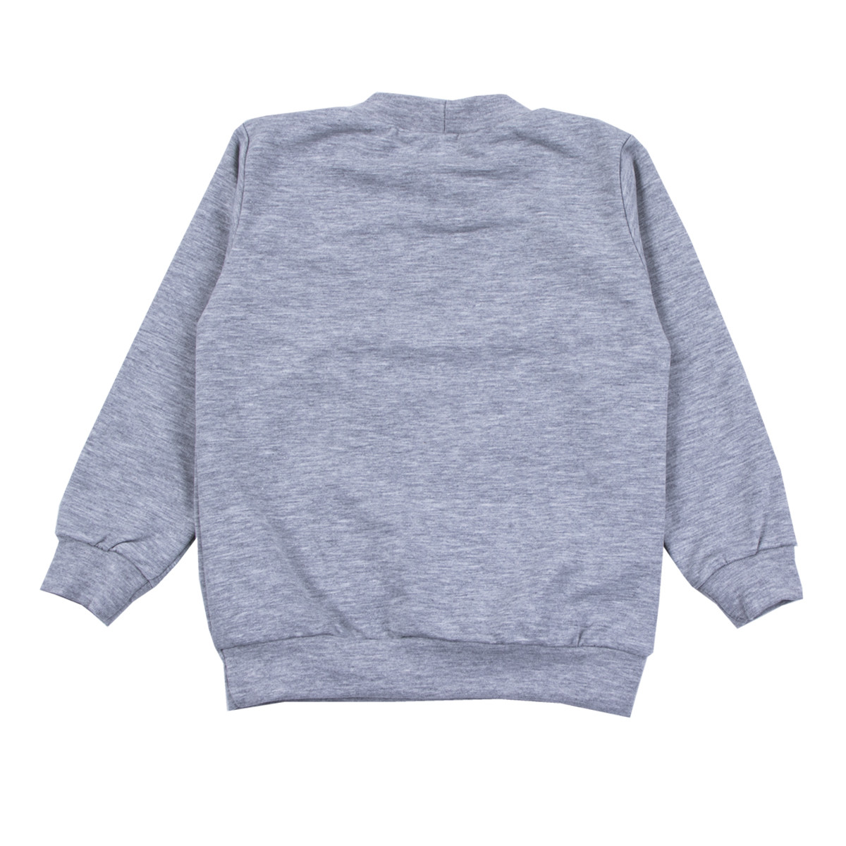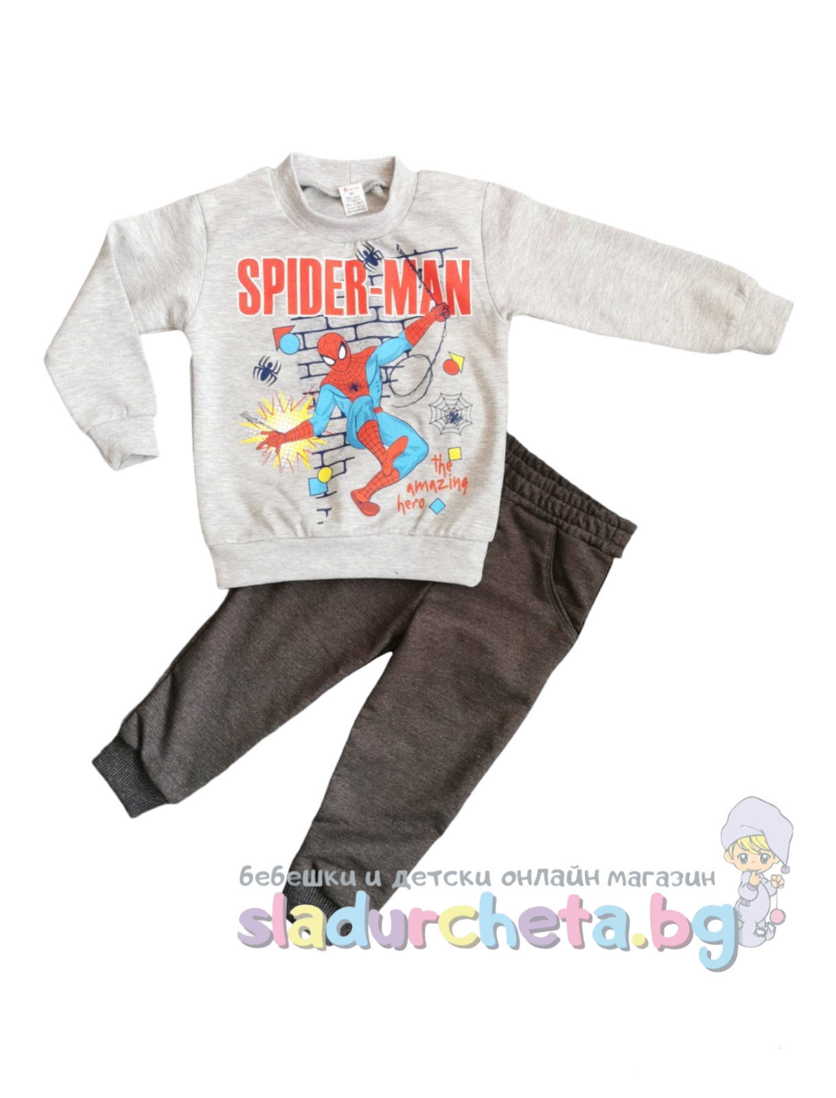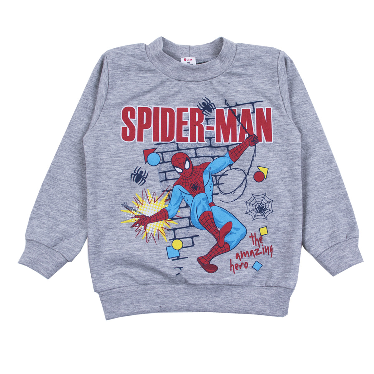 Блузата е с дълъг ръкав в сив цвят с апликация на Спайдърмен;