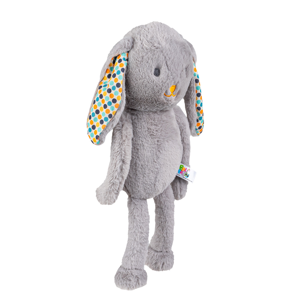 Играчка за гушкане има чифт дълги уши с цветни центрове и приказно пухкава козина;