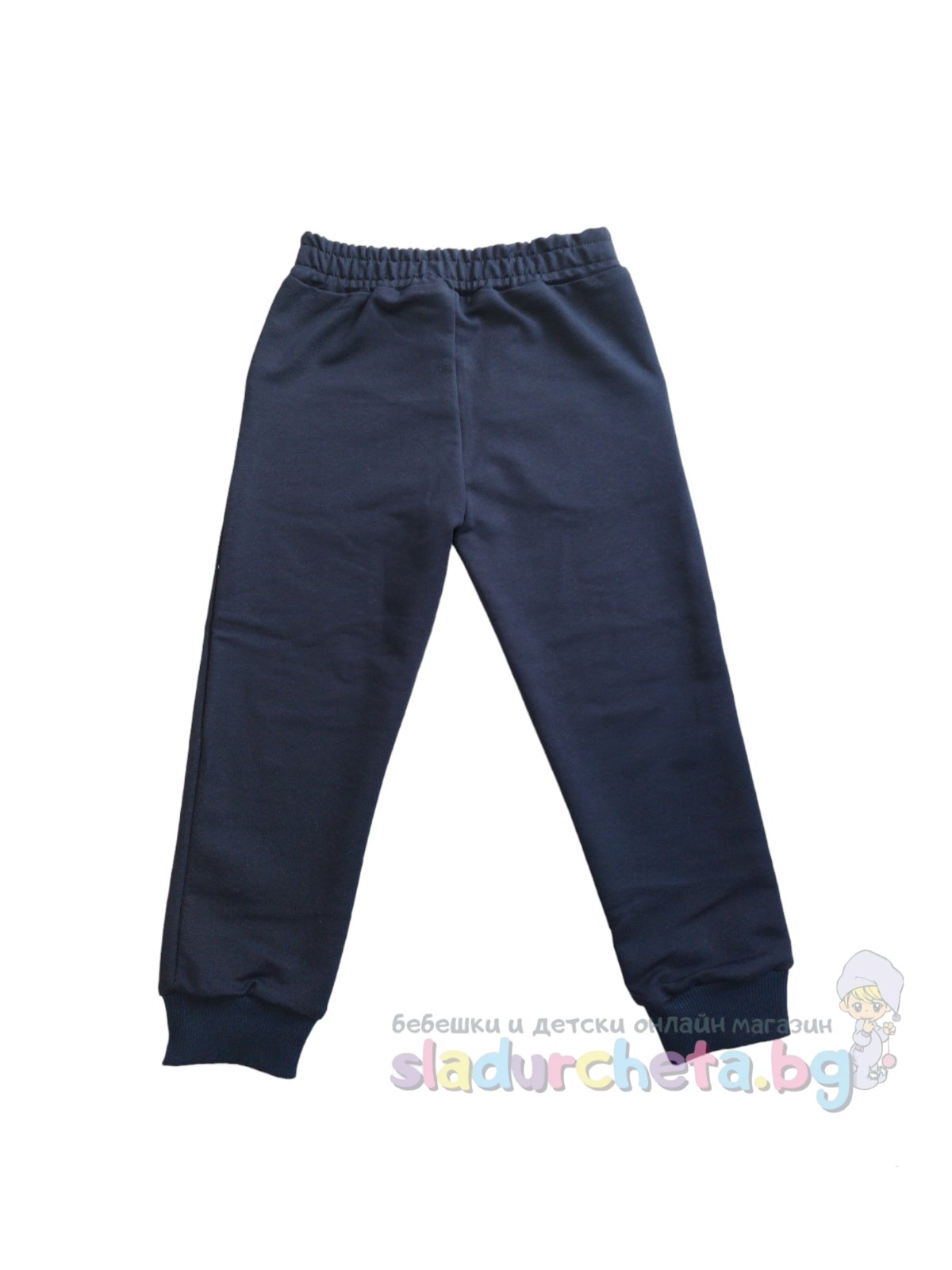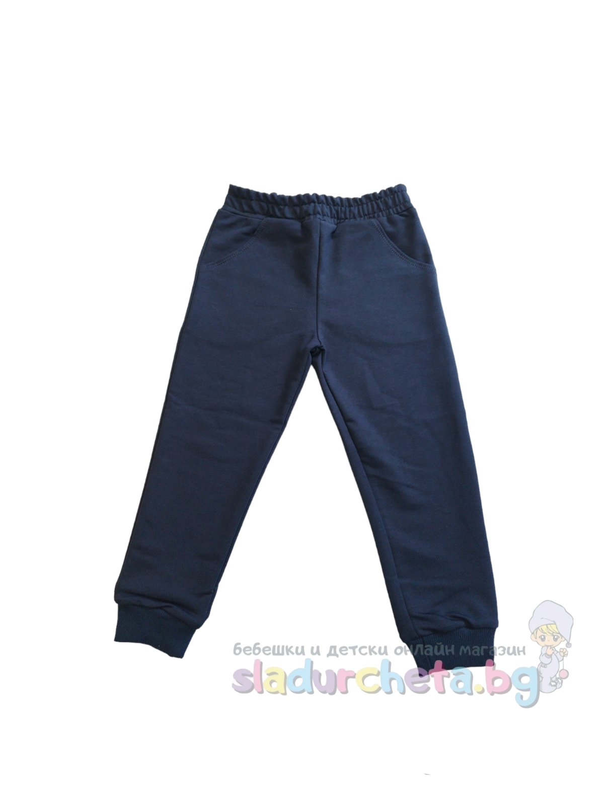 Панталонът е с два джоба в тъмносин цвят с изчистен дизайн и ластична част на талията;