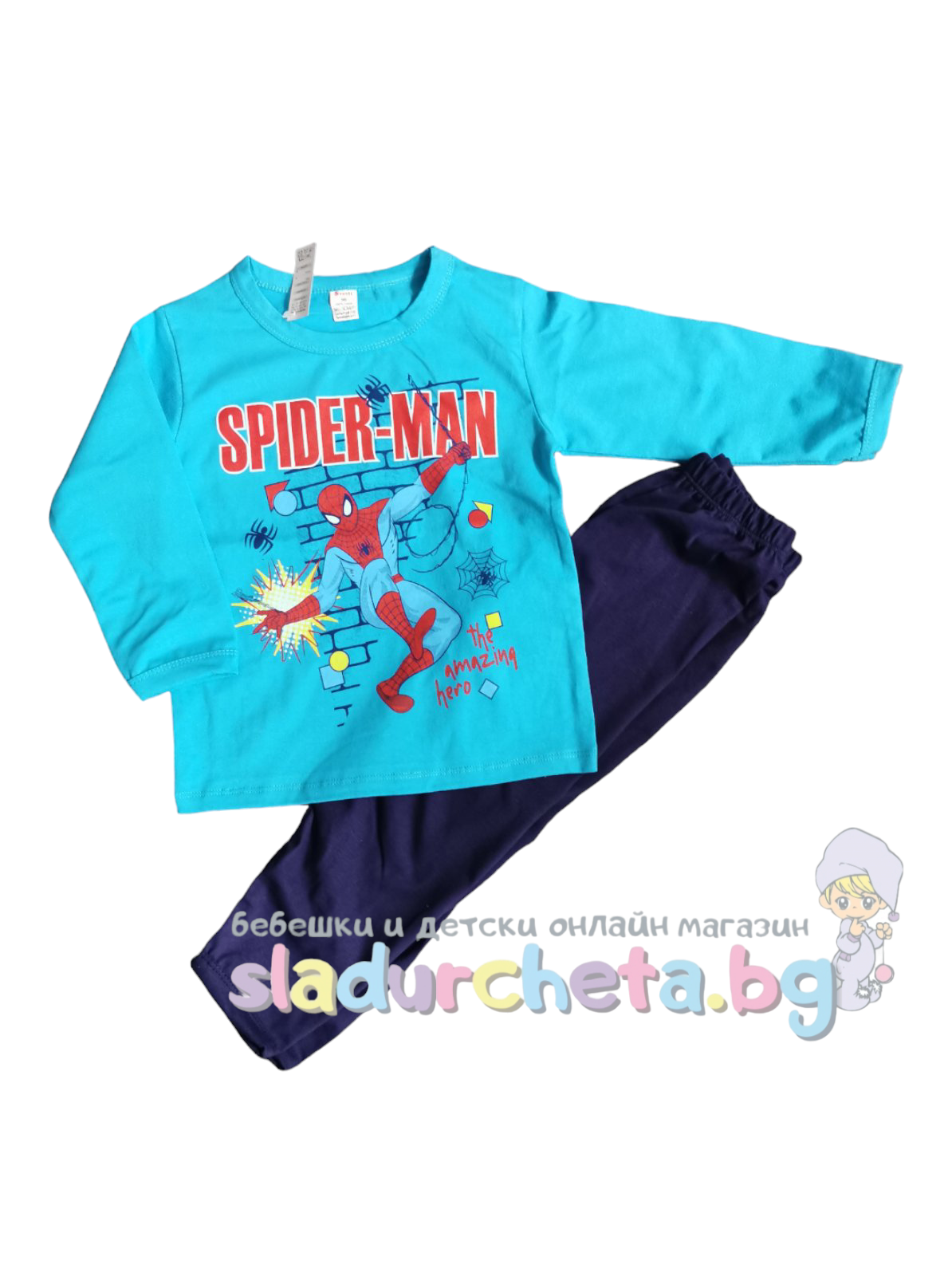 Блузата е с дълъг ръкав в син цвят с апликация на Спайдърмен;
