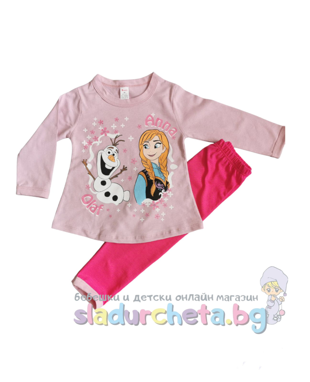 Блузата е с дълъг ръкав в лилав цвят с апликация на Анна от Замръзналото кралство;