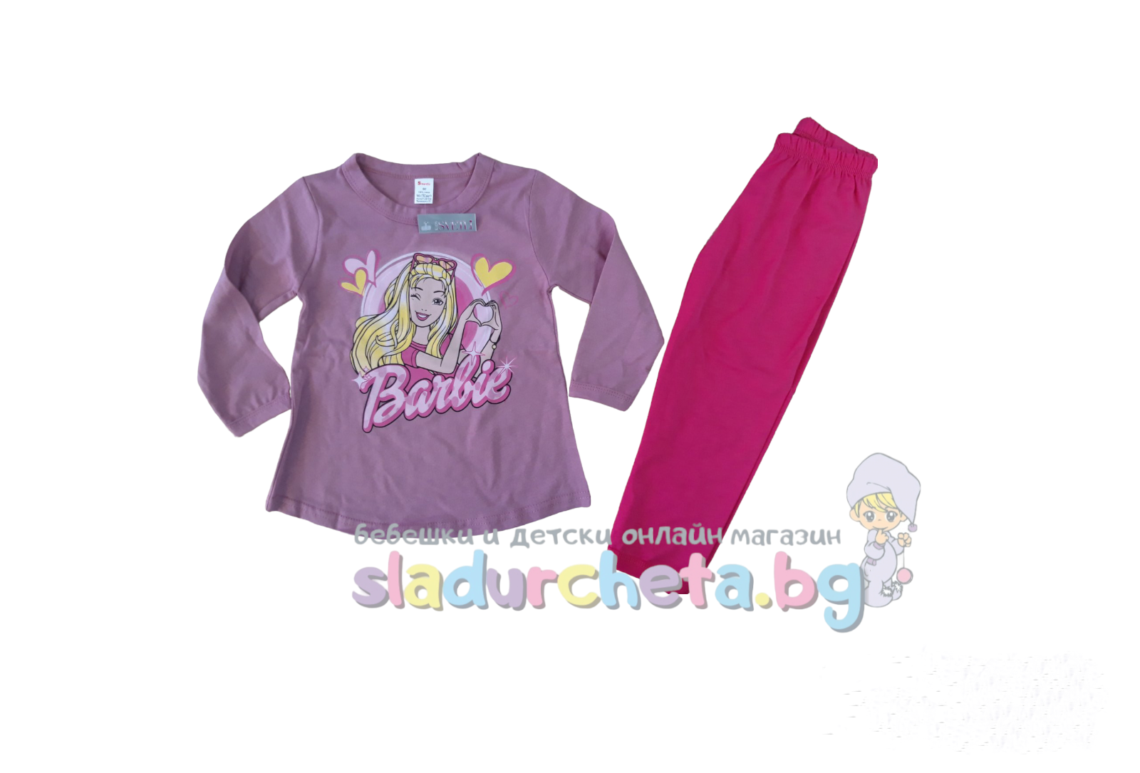 Блузата е с дълъг ръкав в лилав цвят с апликация на Барби;