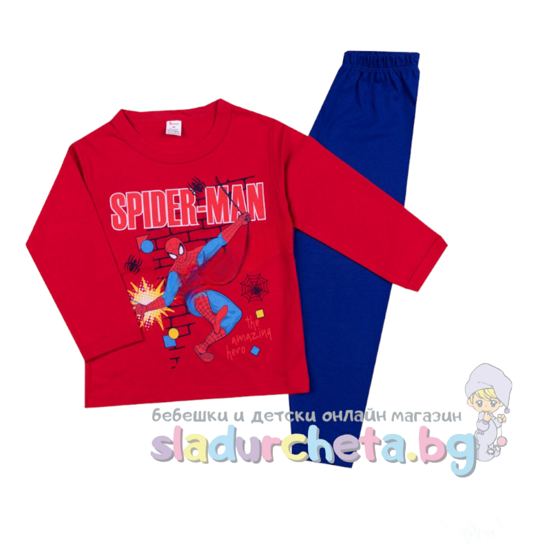 Блузата е с дълъг ръкав в червен цвят с апликация на Спайдърмен;