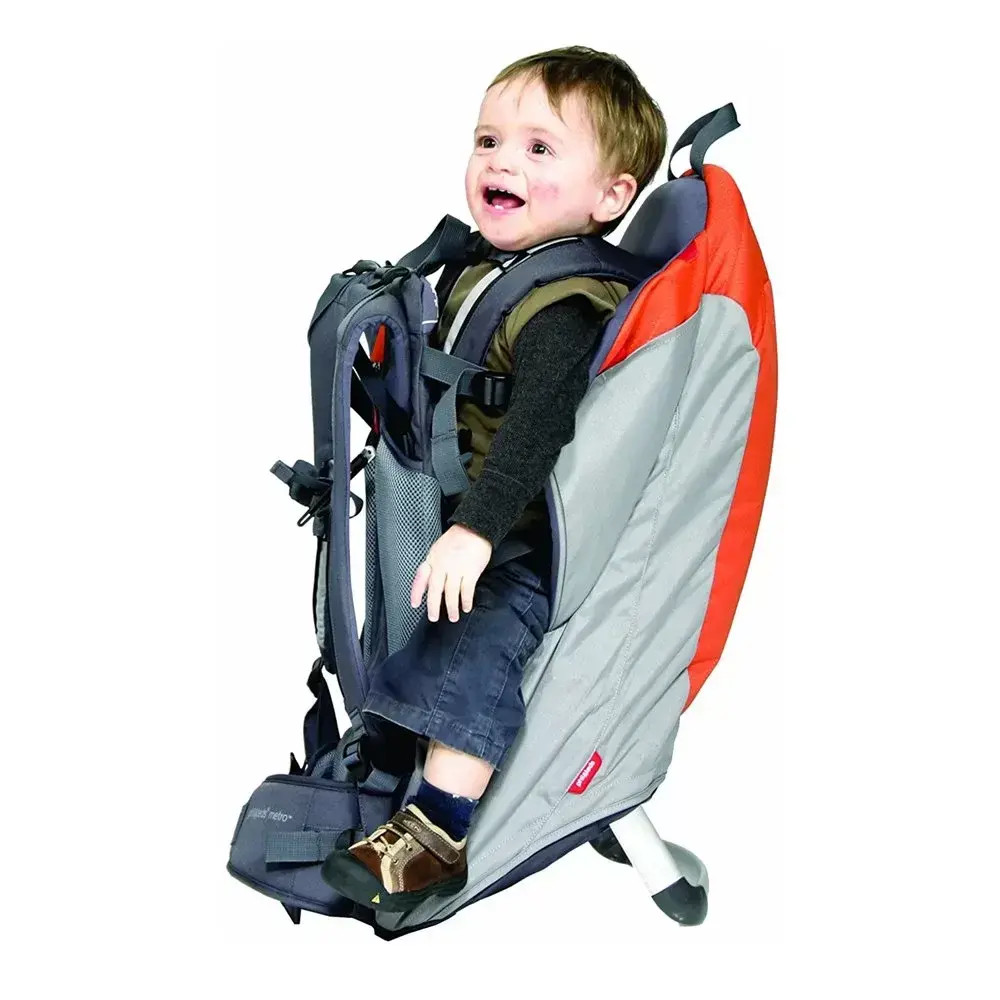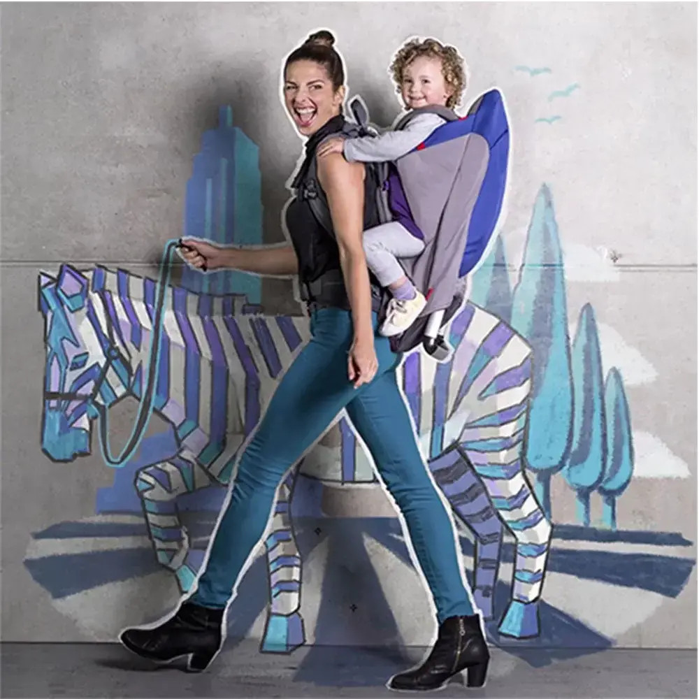 • Лека и бързо сгъваща се система - за стабилно поставяне на на равна повърхност и лесно поставяне на детето в раницата;
