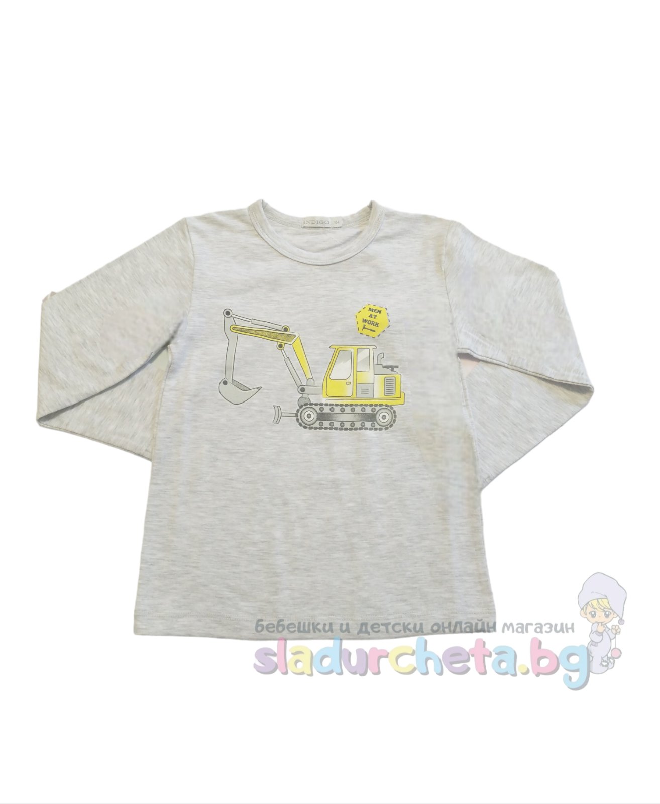Блузата е с дълъг ръкав в сив цвят с апликация на багер;