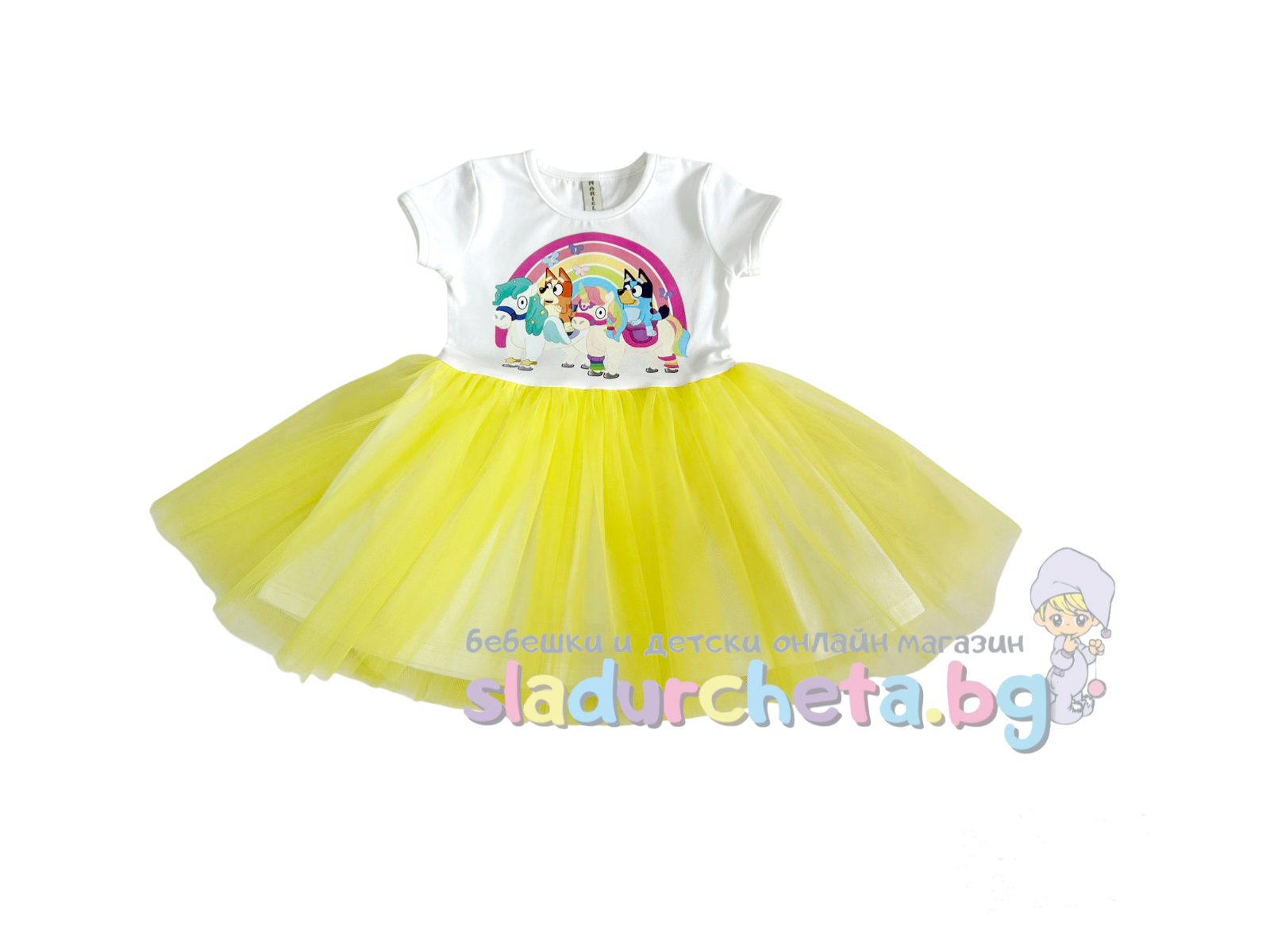 Бебешки и детски магазин "СЛАДУРЧЕТА" и марката "Мариела" представят на Вашето внимание детска рокля със следните характеристики: