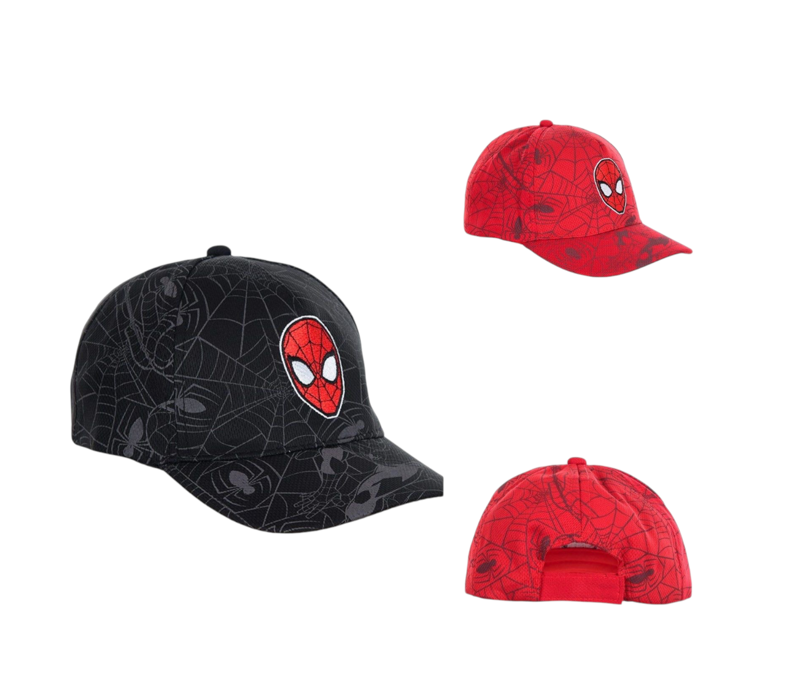 Шапката се предлага в два цвята: в черен или червен цвят с апликация на Спайдърмен;