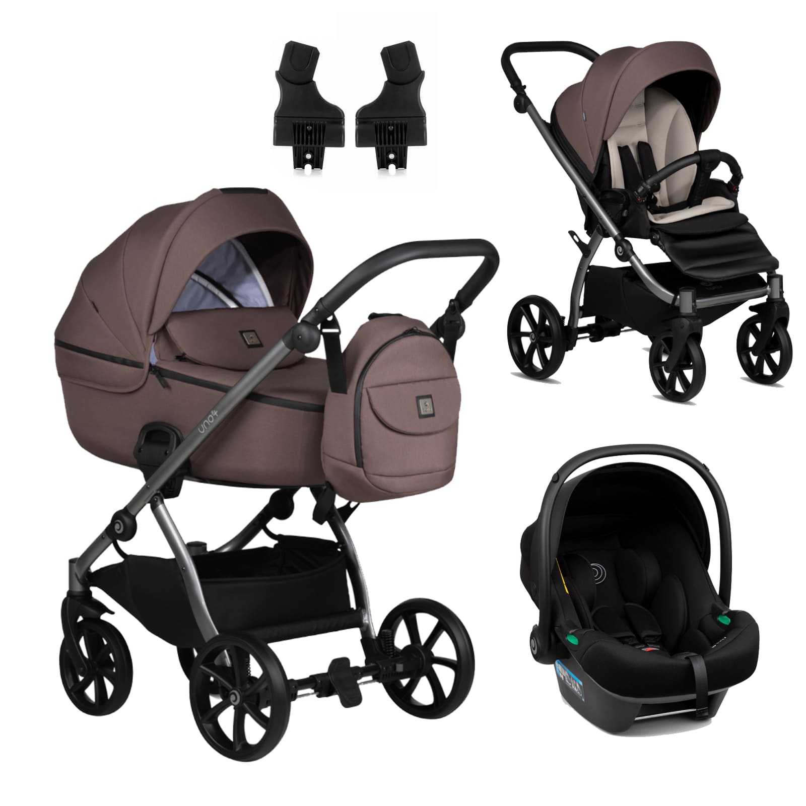 Съвместимо с рамата на количката, посредством адаптори, които са включени в комплекта;