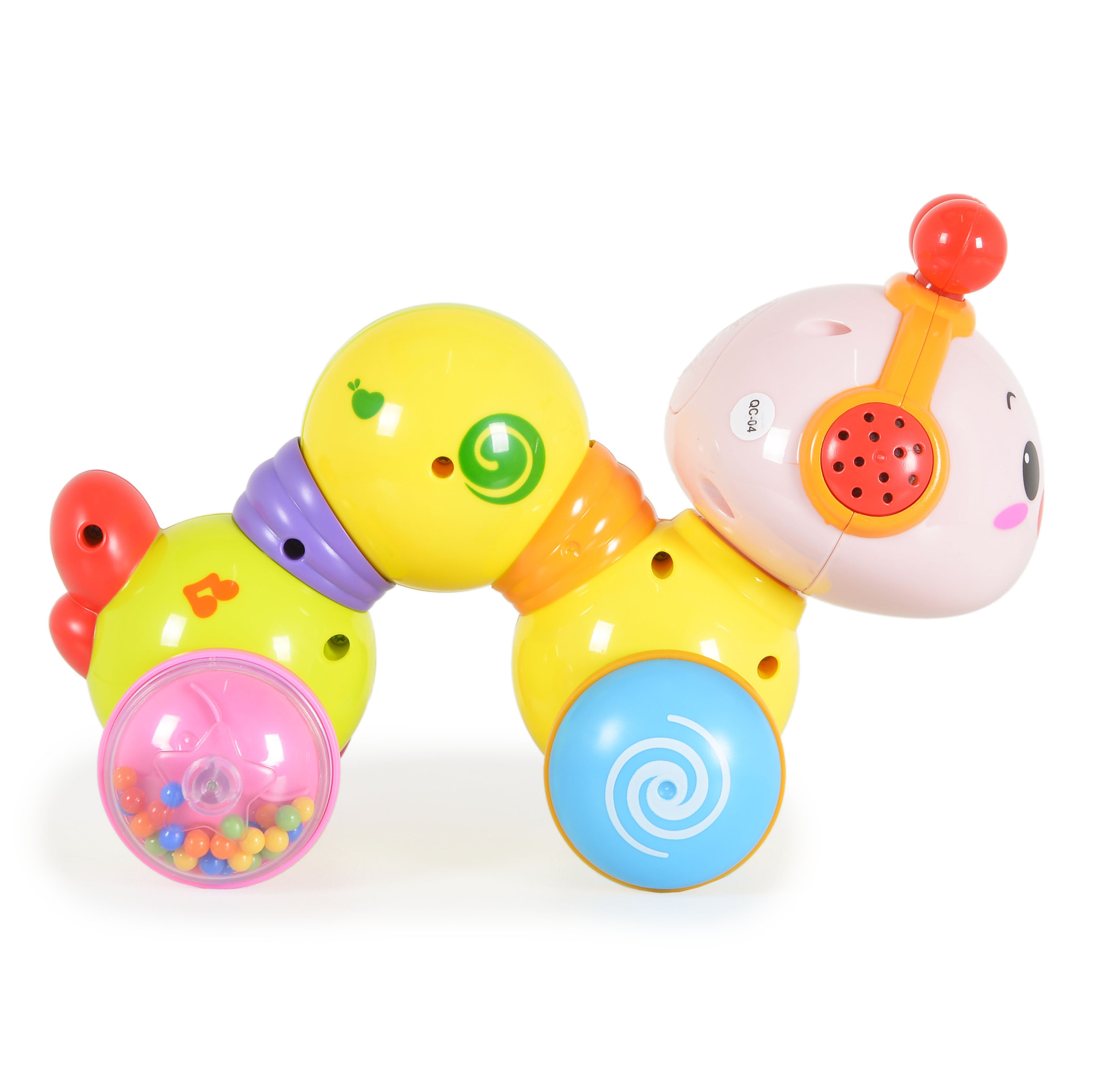 Забавна и цветна музикална гъсеница, която ще стимулира малките деца да пълзят или ходят след нея;