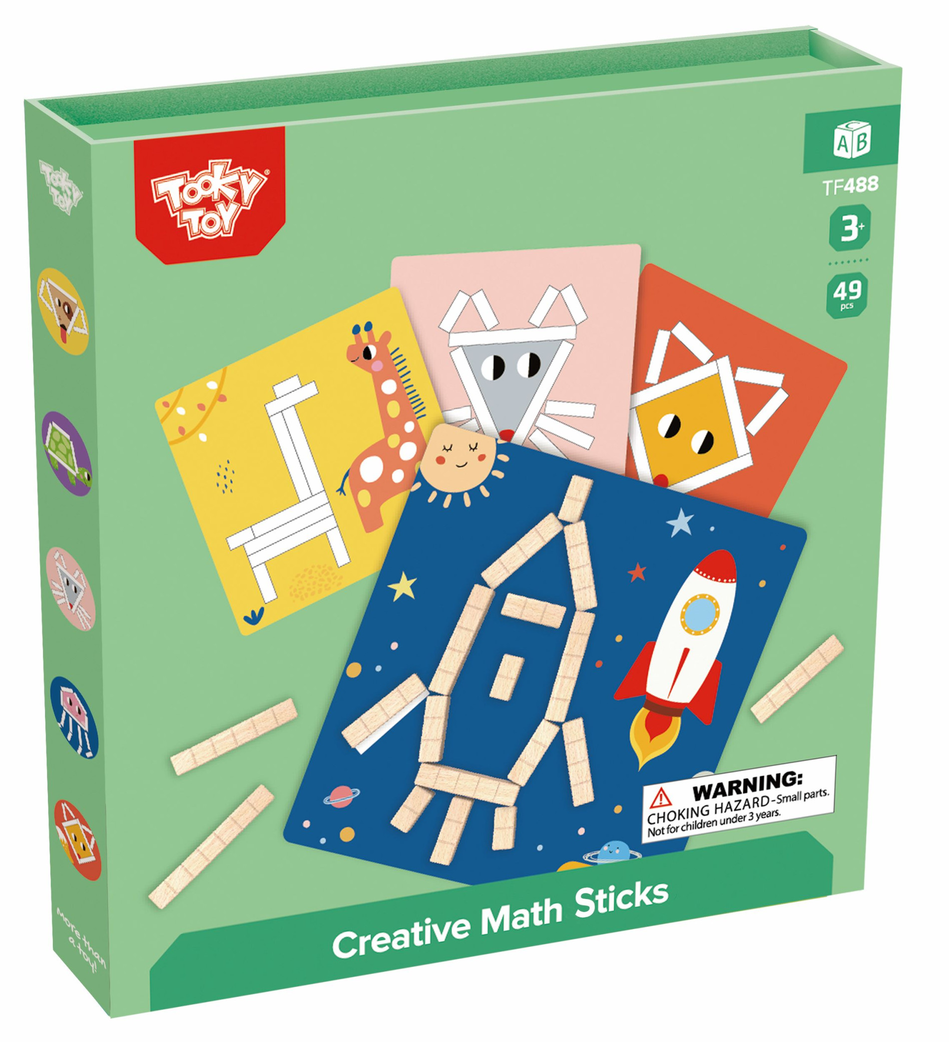 Комплектът включва: 24 карти с изображения, 36 дървени магнитни пръчици с различни дължини и книжка с идеи за подреждане;