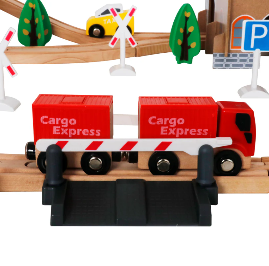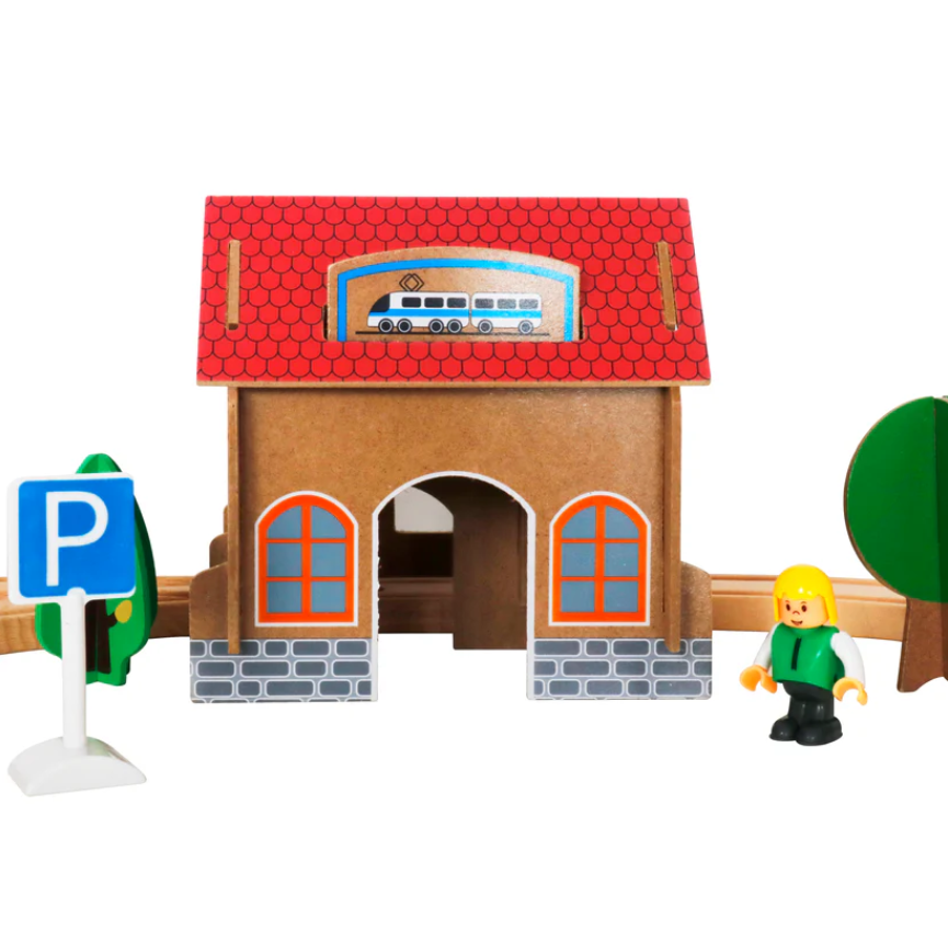 Дървеното влакче е с кутия, за да улесни за съхранението и пренасянето на играчката;