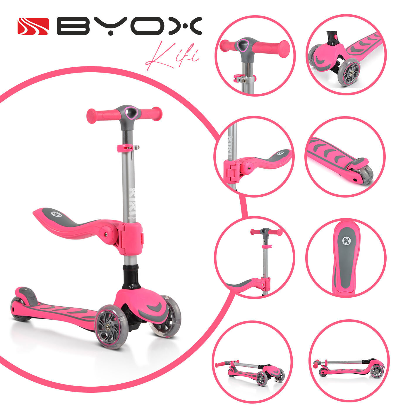 Бебешки и детски магазин "СЛАДУРЧЕТА" и марката "Byox" представят на Вашето внимание тротинетка със следните характеристики: