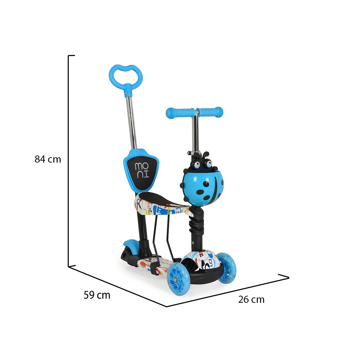 Бебешки и детски магазин "СЛАДУРЧЕТА" и марката "Moni" представят на Вашето внимание тротинетка със следните характеристики: