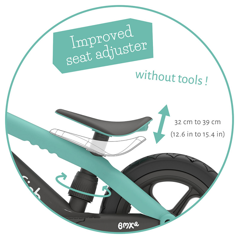 • Регулируема седалка без инструменти (височина от 32 см до 39 см);