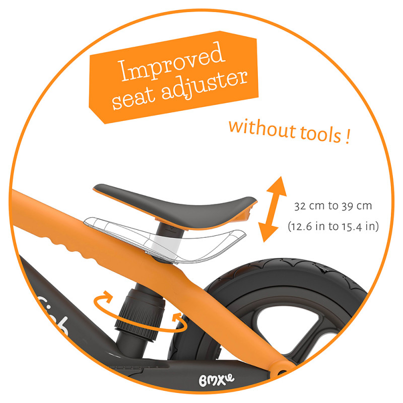 • Регулируема седалка без инструменти (височина от 32 см до 39 см);