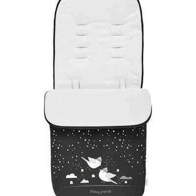 Удобно и сигурно поставяне на спалния чувал в седалката на детската количка с помощта на отвори, през които могат да преминават 3 и 5 точкови колани;