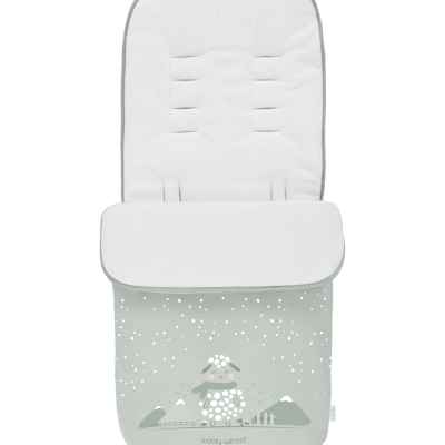 Удобно и сигурно поставяне на спалния чувал в седалката на детската количка с помощта на отвори, през които могат да преминават 3 и 5 точкови колани;