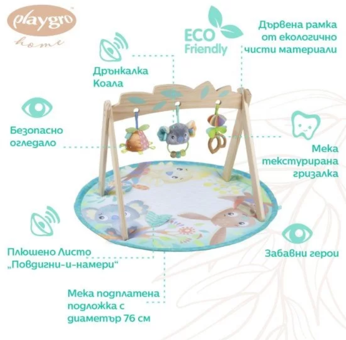 Активна гимнастика с дървена арка Playgro Fauna Friends