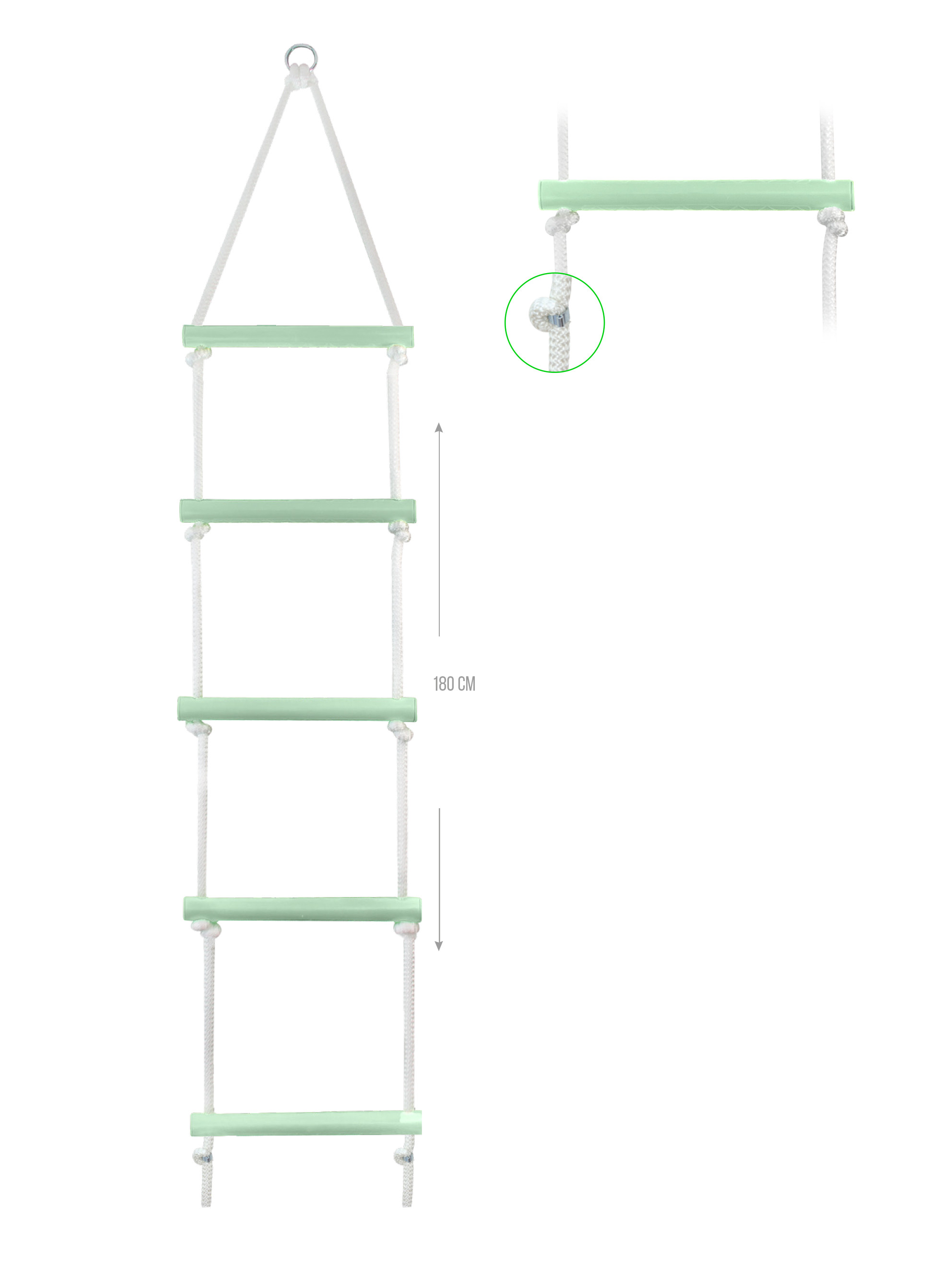 Бебешки и детски магазин "СЛАДУРЧЕТА" и марката "Moni" представят на Вашето внимание въжена стълба със следните характеристики: