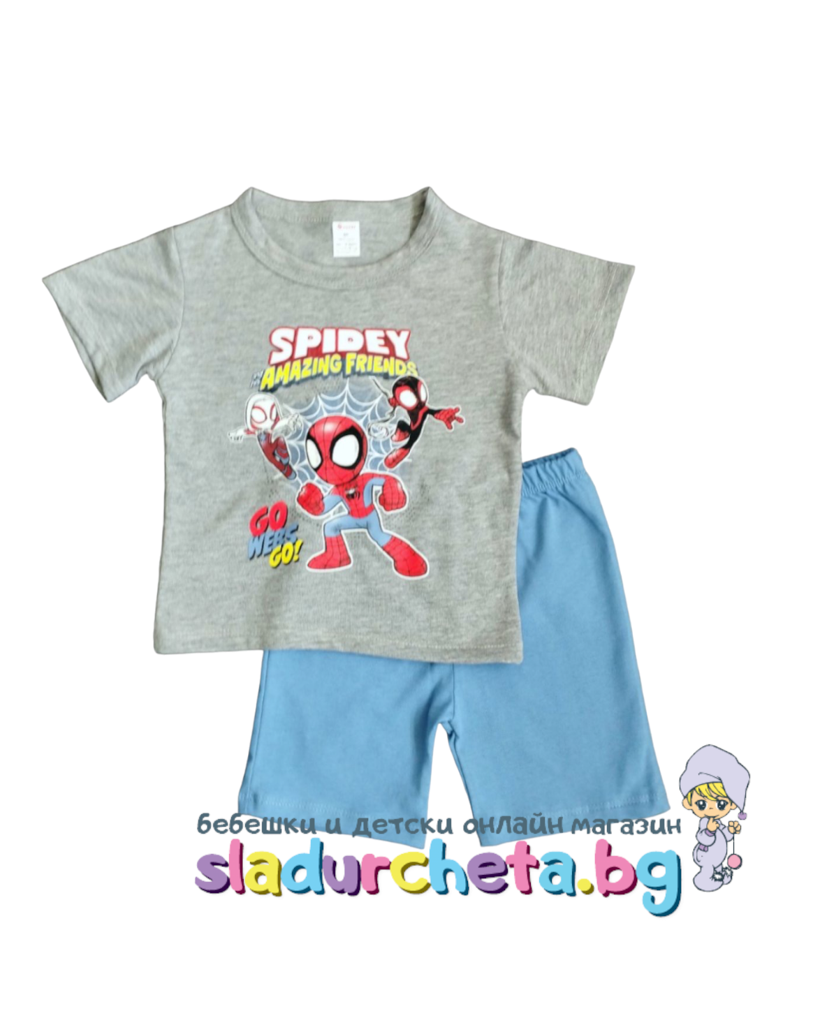 Тениската е в сив цвят с цветна апликация на Спайдърмен;
