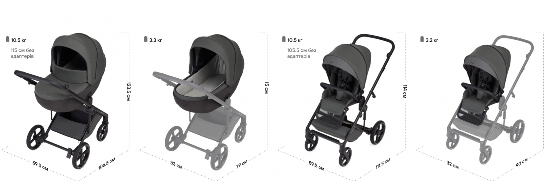 • Адаптори за регулиране на височината на коша за новородено и лятната седалка;
