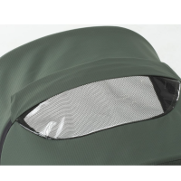 • Голям сенник с регулируема козирка и прозрачно прозорче за по-добра вентилация и охлаждане през лятото
